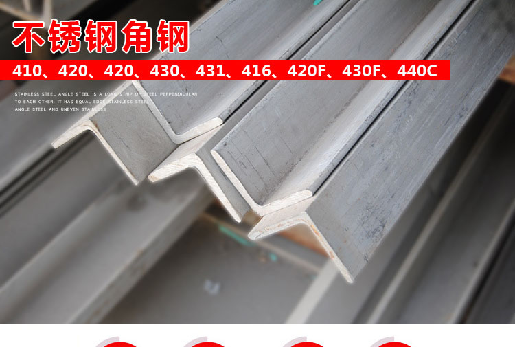 不銹鋼角鋼是兩邊互相垂直成角形的長條鋼材。有等邊不銹鋼角鋼和不等邊不銹鋼角鋼之分。等邊不銹鋼角鋼的兩個邊寬相等。其規(guī)格以邊寬×邊寬×邊厚的毫米數(shù)表示。如“∠25×25×3”,即表示邊寬為 25毫米、邊厚為3毫米的等邊不銹鋼角鋼。也可用型號表示,型號是邊寬的厘米數(shù),如∠2.5#。型號不表示同一型號中不同邊厚的尺寸,因而在合同等單據(jù)上將不銹鋼角鋼的邊寬、邊厚尺寸填寫齊全,避免單獨用型號表示。熱軋等邊不銹鋼角鋼的規(guī)格為2#-20#。